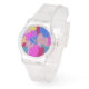 I was pleasantly surprised by the good quality of this watch. It's an easy size to wear on a small wrist and both the band and the watch are well made. I also liked the translucent case the watch is packaged in. The printing is crisp and clear and shows off my Create With Photos oyster flower design well.
