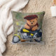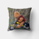 A soft toy teddy bear as a motorcyclist in nature, a funny pillow with two different sides and pictures
