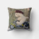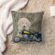 A soft toy dog as a motorcyclist in nature, a funny pillow with two different sides and pictures