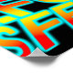 Fun bright artwork that really captures the mood I’m going for! Pop art with cyberpunk energy. A little sweet but also spicy. This art is the perfect size and vibe for our art gallery wall. The printing looks great, high quality with vibrant colors! I went with the semi-gloss finish, which adds a little extra shine and thickness to the print making it excellent for high-traffic areas like the staircase wall.