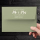Formal return envelopes for The Future Mr and Mrs, customizable in color, size and paper type in an elegant serif typeface with beautiful script design. This is the sage green version.