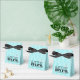 Add a modern chic wedding shower favor to your special day! This pretty little striped favor box is in a popular robins egg or aqua blue, Tiffany blue color with the words "The Future Mrs." in black, with your married name! Two white love birds share one heart. Text under flap "thank you for sharing my day!" Blue and white stripes and a black ribbon makes this elegant bridal shower guest favor perfect! Makes a wonderful "thank you gift box" for your bridesmaids! Personalize with the bridesmaids name on back of box. Don't forget to add one for your mother and mother-in-law to be! Congratulations!