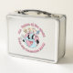 This is a standard metal lunchbox that appears to work just fine. We designed this box ourselves with an uploaded photo and custom text on the front and back. It looks absolutely beautiful except the front of the lunchbox is not centered like it shows in the photo. The print borders don't align with the inset flat part of the box where the preview photo online showed it perfectly centered in there. The back looks nice and centered though.