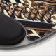 The plastic backing is nice and sturdy. The grippy pads underneath keep the mouse pad where I put it on my table. The pad the mouse sits on is cut well to fit the backing. The wrist pad is perfectly soft, supportive, and thick. I'm left-handed, and this mouse pad works just as well for me as it does for my right-handed friends. I'm the designer of HippieClecticHope products. I'm blown away by how well my intricate fractals turn out on the tangible items in the Zazzle Marketplace. This particular mouse pad ***appears*** like a 3D object... A mathematically-engineered rainbow black opal, inlaid under transparent fabric...