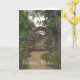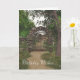 This birthday card card features an original artwork of a beautiful ornate garden gate and a cozy home beyond, by artist Jayne Wilson.