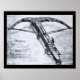 Ancient Balestra sketch and studies of Leonardo da Vinci c.1500, pen and ink on paper in black white grey colors.