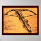 Ancient Balestra sketch and studies of Leonardo da Vinci c.1500, pen and brown ink on paper with old aged antique parchment ,grunge effects.