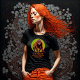 My 11 yo wore adult XL (5’7” 165#). The 8yo is small framed. She wore adult small and tied it in the back. Grandma wore adult large with long sleeve shirt underneath. Tall girl adult medium. Dark haired male adult large. Good quality dark Heather gray, Gildan brand shirt. -it was next up from basic choice and cost about $20 per shirt. Not too thick or thin. Washed and dried well, no major shrinkage. Not see-through. Can wear a bra under it fine. Screen print is just as shown and well done, front and back.