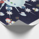This design features a white and blue snowflake, colored snowflakes and lots of snowmen dressed for a cold Christmas season. A glitter was added to this design. This Christmas gift wrap comes in assortment of colors, styles and sizes.
