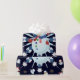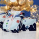 This design features a white and blue snowflake, colored snowflakes and lots of snowmen dressed for a cold Christmas season. A glitter was added to this design. This Christmas gift wrap comes in assortment of colors, styles and sizes.