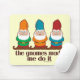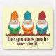 The Gnomes made me do it. 3 different colored gnomes hanging out. Parody / spoof of The devil made me do it. 3 gnome images.