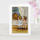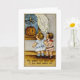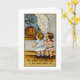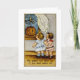 Vintage Halloween greeting card illustration showing a children looking at a jack o'lantern in the window.