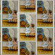 Vintage Halloween greeting card illustration showing a children looking at a jack o'lantern in the window.