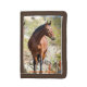 TriFold Nylon Wallet featuring our beautiful boy "Jedi" or Jet Iron as his name was while he was winning races. He is one of our younger horses and a very sensitive horse, that has been through much in his life. His best buddy at the ranch is Gio. The wallet is made from super durable nylon, ready for school, beaches, surf, or the urban jungle. Customize the wallet cover with your photos, designs, and text. 100% nylon construction with hook and loop closure. Full-length bill pocket, two credit card pockets, and ID card window. Measurements: 4.5” x 3.1” (closed) & 4.5” x 9.5" (open).