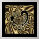 A Wallposter with an Abstract design in Black/Gold colours, reminiscent of the "Golden era" years of hollywood, expensive clothes richly designed homes for movie stars.Art decor,and everything on a grans scale.*