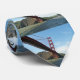 Famous golden gate bridge above sea surrounded by rocks against blue sky