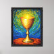 Experience the dramatic, swirling energy of this expressionist canvas print. "The Golden Libation" showcases a majestic, textured golden chalice or cup set against an intensely vibrant background.