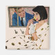 Artist: Coby Whitmore | Woman in a polka dot coat in a car smelling a yellow flower.