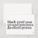 Send handwritten well wishes to the people you love to celebrate the New Year. The Good Luck Flat Notecard pays homage to the New Year's Eve or New Year's Day tradition of eating black eyed peas, stewed tomatoes and collard greens to usher in economic prosperity, wellness, and good luck for the year. Adrian Miller, an author and food historian, said that the melding of West African and European traditions had come to inspire rituals observed by Black Americans. Today, this tradition is shared by many people from various backgrounds. The Good Luck Collections includes other products like greeting cards, apparel, and lifestyle goods.