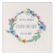 A tender word in a heavenly wreath of watercolor print mauve, blue, and dark cream flowers, enhanced with many sage green leaves and watercolor spatters. To keep it soft, the background is a lightly stippled creme image.