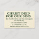 This evangelism card shares the full gospel of grace from 1 Corinthians 15:3–4. A great witnessing tool, church giveaway, or discipleship card.