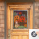 A window cling with a funny Halloween cartoon about a pumpkin family. The image, and background can be personalized. Original artwork by DBcartoons.