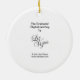 Lightweight, smooth, pure white ornament with nice sheen. Perfect size to be seen from across the room ... and to attract closer inspection! Price was great for ordering enough for the whole family! Clear, bold black design just as requested. Matches the order exactly. Just so nice!