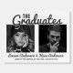 Double graduates, double party celebrations! These modern graduation welcome boards, feature 2 graduates and their photos with a stylish announcement template. All font styles and background colors can be changed by clicking on the customize further link after personalizing.