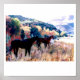 A quarterhorse and two thoroughbreds hear the mistress coming with grain. The landscape is in Central Utah, and is presently recovering from a forest fire just last year! See more of Lonni Clarke's work at www.lonniclarke.com.