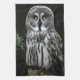 The Great Grey Owl - Portrait of a great grey owl standing on a log photographed looking directly at the camera.
