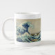 This oversize mug features a very famous woodblock print called Kanagawa Okinami-Ura (神奈川沖浪裏), known in English under the name The Great Wave off Kanagawa. It was first printed during the 1830s by an artist named Katsushika Hokusai as a part of his Thirty-Six Views of Mount Fuji series.