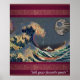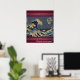 The great wave with a pixelized/pixelated moon poster