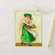 The Green Shamrock Vintage St. Patrick's Day Postcard featuring an Irish maiden dressed in green with a basket full of shamrocks