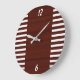 Score a touchdown in home decor with this sleek, sports-inspired wall clock. Featuring a rich mahogany wood-grain texture and bold white athletic stripes, this modern timepiece captures the spirit of the game with a minimalist touch. Perfect for a sports-themed man cave, a teen’s bedroom, or a stylish office, this high-quality clock combines functional timekeeping with a sophisticated nod to your favorite field sports.