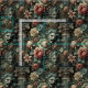 In The Grief Council, baroque florals entwine with the spectral visages of two solemn figures—one snarling in rage, the other brooding in silence. Blush peonies and muted teal foliage spill through fractured Corinthian columns, creating a stage where sorrow and fury convene in ghostly debate. Perfect for upholstery, drapery, or garments that command both beauty and unease.