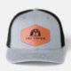 Custom Leather Patch Hat, Sytle: Adult Retro Trucker Cap, Color: Heather / Black, Shape: Circle