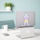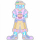 This digital drawing features a happy blue dog with blue spots, wearing a yellow hat, yellow shorts with colorful accents, a purple shirt, and cute gloves. He is holding a potted plant that he grew, showcasing his green thumb. The dog's expression is incredibly happy, and it's clear that he is proud of his plant. This artwork is perfect for anyone who loves cute and quirky animal art.