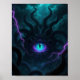 Beneath the storm-tossed skies, the sea trembles as something ancient rises from the depths. A mass of coiling, scaled limbs stretches into the darkness, each motion heavy with otherworldly malice. At the core of this nightmare burns a single radiant eye—shifting between hues of sapphire and violet, its gaze both mesmerizing and suffocating. Legends claim the Harbinger Below does not see as mortals do; it peers through time itself, watching futures collapse into ruin. When its eye opens, lightning rends the heavens and the boundary between worlds falters, heralding calamity. Few who have witnessed its awakening remain to speak of it, and those who do are forever haunted by the memory of its gaze.