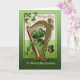 5” x 7” greeting card with a vintage image of the golden Harp of Erin adorned with a green bow and a pretty green shamrock. A black top hat lies on the ground beside it with a green hat band. Inside customizable sentiment reads, “May you always walk in the sunshine. May you never want for more. May Irish angels rest their wings right beside your door. May your pockets be heavy and your heart be light, May good luck pursue you each morning, noon and night.” See the entire St. Patrick's Day Greeting Card collection under the CARDS & STICKERS category in the HOLIDAYS section.