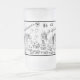 This image is of a wedding ceremony "Halloween style". The groom and bride are skeletons walking down the aisle. Guests of the couple include a ghost, bat, owl and witches. A full moon with some clouds and the couple coming through the pumpkin patch in the graveyard. A great decoration for Halloween. These frosted mugs and regular mugs are available in assorted styles, colors and sizes. A great addition to a Halloween celebration.