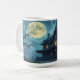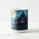 A spooky, creepy haunted house under a full moon, with spooky trees around it, makes a beautiful Halloween mug.