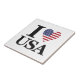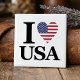 Add a touch of patriotism to your home with "The "Heart of America" Ceramic Tile. This high-quality, white ceramic tile features the classic "I [Heart] USA" design, where the heart is a stars and stripes pattern. It is durable and versatile, perfect for use as a trivet, a unique coaster, or simply as a decorative accent piece. Display your American spirit with pride in any room.