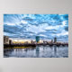This dramatic scene of the Boston Skyline in the wintertime during dusk. There is a faint heart in the clouds of the sky.