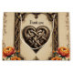 The heartbeat of the ancient gods: A magical Celtic frame. An ornate, Celtic-inspired frame with complex knot patterns in gold and brown tones. A spade-shaped ornament with a knot is located at the top, and a heart-shaped knot is located at the bottom, flanked by vibrant orange and red flowers. The design combines tradition, strength, and vitality.