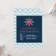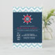 A nautical-theme invitation with a light blue and white chevron background overlaid with a navy blue panel to hold your party details and a ship's tiller. (<a href='http://www.freepik.com/free-vector/birthday-card-with-nautical-elements_886557.htm'>Designed by Freepik</a>). <br/><br/>The card is easy to customize with your wording, font, font color, paper shape options and choice of six paper types.<br/><br/>Not exactly what you're looking for? All our products can be custom designed to meet your needs at no extra charge.<br/><br/>Simply contact us at heartfelthelper@gmail.com.<br/><br/>Coordinating products available: Just ask us!