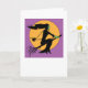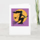 Halloween Card - Witch on broomstick flying against the moon
