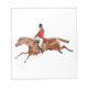 An illustration of an English hunter wearing a redcoat and riding a horse.