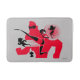 This rug is just as pictured! Vibrant Red and very soft material, nice to step in out of the tub! Matches my set of accessories and shower curtain! A must have to add some whimsy to your bathroom! Very nice, vibrant and clear print! Beautiful!