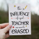 Celebrate the lasting impact of a special teacher in your child's life with our charming greeting card! This 5 x 7 card features a beautiful design inspired by the quote, “The influence of a good teacher can never be erased.” The inside of the card is intentionally left blank for you to write a personal message. It's a wonderful way to make any special teacher feel loved and appreciated.
