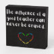 Celebrate the lasting impact of teachers with this beautiful wooden box tabletop sign. Featuring the touching quote, "The influence of a good teacher can never be erased," and a heart made of colorful pencils, this sign is the perfect gift for teachers. Ideal for teacher appreciation, retirement gifts, or as a heartfelt thank you, it adds warmth and inspiration to any classroom or educational setting.